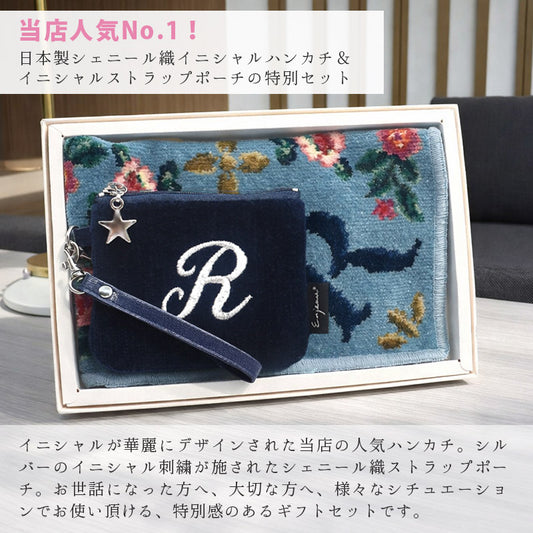 2枚以上ご購入で送料無料 セール 在庫ある限りの限定価格 日本製 シェニール織 ハンカチ イニシャル Enjeau アーンジョー