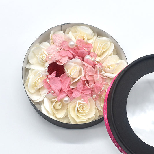 【今だけ限定1,000円引】Enjeau(アーンジョー):クリスマス 特別ギフトセット クリスマスアレンジ プリザーブドフラワーボックス&日本製 シェニール織 ミニハンカチ セット