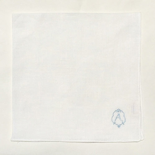 選べる 花文字イニシャルハンカチ 23cm ホワイト