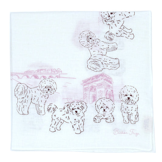 Linen la vie(リネン ラ・ヴィ):日本製 ビションフリーゼ リネン ハンカチ LittleTrip 麻100% 大判 44cm