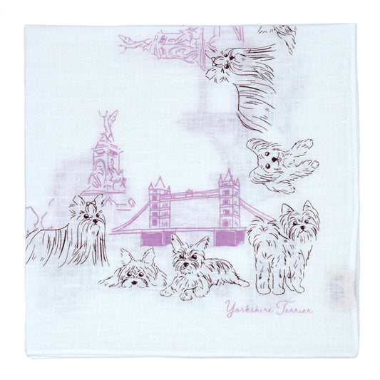 Linen la vie(リネン ラ・ヴィ):日本製 ヨークシャーテリア リネン ハンカチ LittleTrip 麻100% 大判 44cm ヨーキー