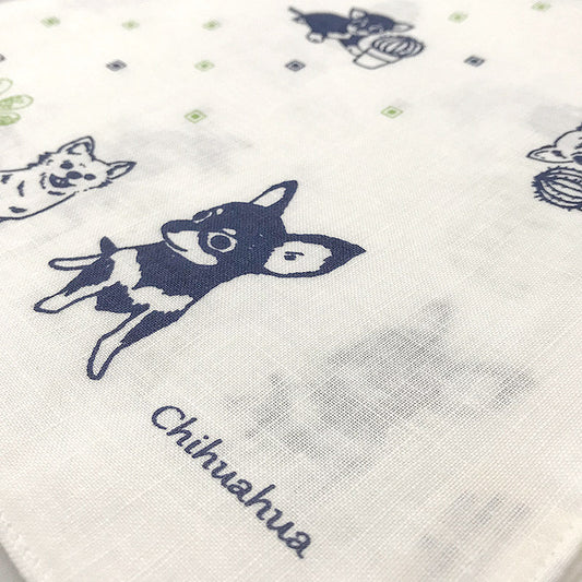Linen la vie(リネン ラ・ヴィ): チワワ柄 日本製 リネン100% ハンカチ