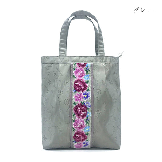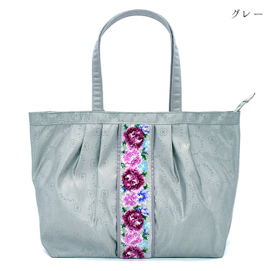 日本製 軽量 横型トートバッグ フローラ ハンドバッグ A4サイズが入る シェニール織 Enjeau アーンジョー