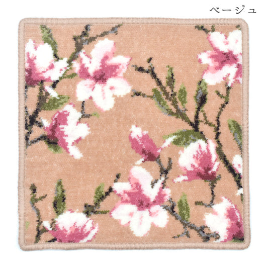 日本製 マグノリア柄 ハンカチ シェニール織 23cm 2062