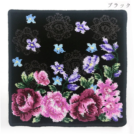 RUNE【内藤ルネ × アーンジョー】モノトーンフラワー 日本製 シェニール織 ハンカチ
