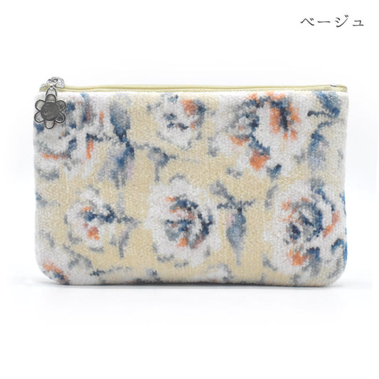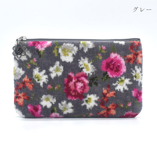 日本製 フラットポーチ ローズソフィア シェニール織 チャーム付 お薬手帳入れ ギフトラッピング対応可