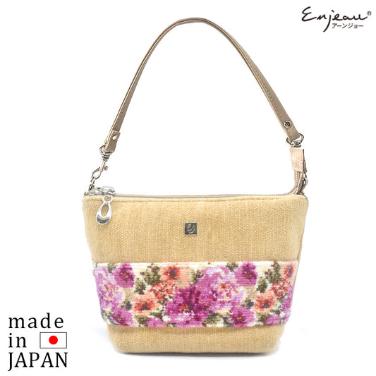 日本製 軽量 横型トートバッグ フローラ ハンドバッグ A4サイズが入る シェニール織 Enjeau アーンジョー