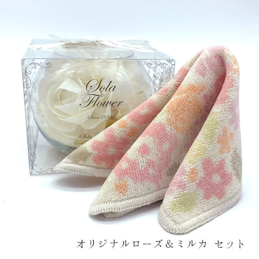 日本製 選べる AHKMNRSTY イニシャル ミニハンカチ&一輪バラ セット プリザーブドフラワー リトルローズ柄