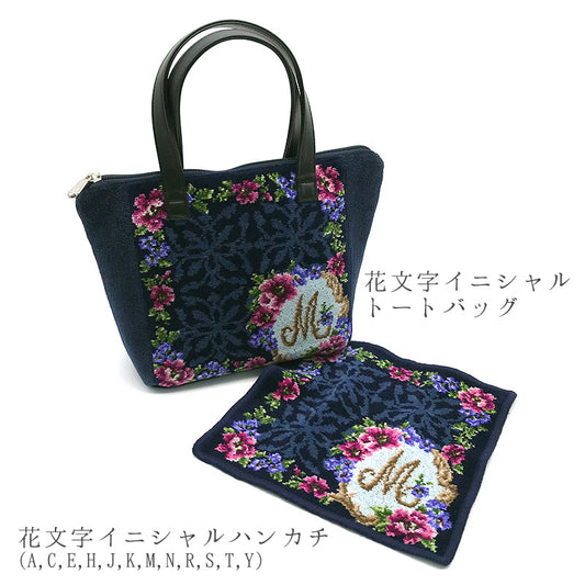日本製 選べるイニシャル トートバッグ&ハンカチセット ギフトセット 花文字 レディース プレゼント Enjeau アーンジョー