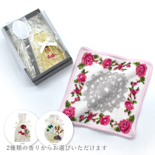日本製 シェニール織 リトルローズ ミニハンカチ&ディフューザーセット ギフトセット パフューム Enjeau アーンジョー