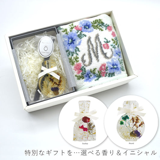 選べる 日本製 イニシャル ハンカチ & 香る パフューム ディフューザー ギフトセット ラッピング済み アーンジョー Enjeau