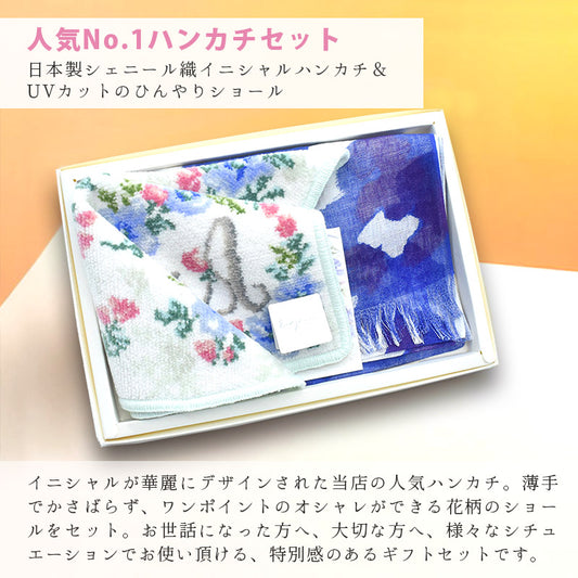 日本製 イニシャルハンカチ&UVカットショール ギフトセット ラッピング済 アーンジョー Enjeau