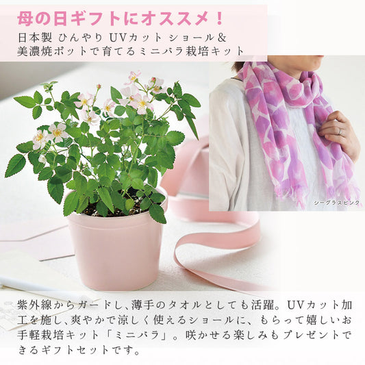 日本製 冷感 UVカット ショール & ミニバラ 栽培キット ギフトセット ストール 紫外線カット UV対策 ラッピング済み