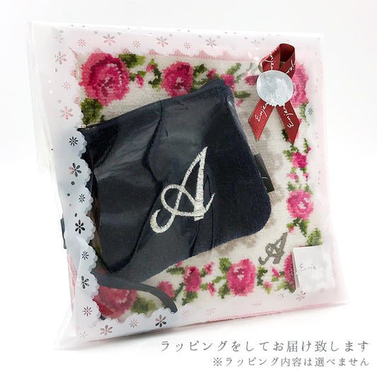 選べるイニシャル AHKMNRSTY ミニハンカチ&ストラップポーチ ギフトセット リトルローズ柄