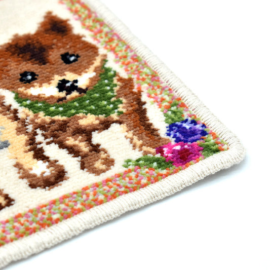 柴犬(シバ犬)柄 日本製 シェニール織 ミニハンカチ 17cm