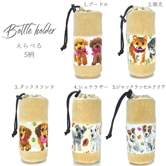 日本製 犬猫柄 総シェニール織 ペットボトルカバー ボトルホルダー