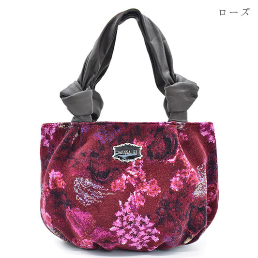 日本製 結び手ハンドショルダーバッグ ローズシリーズ MISSA.EJ(ミッサ・イージェー) ショルダーバッグ 肩がけバック シェニール織 2056