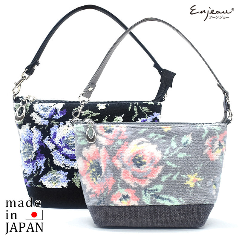 日本製 総シェニール織 コスメポーチ ローズソフィア 化粧ポーチ フォーマルバッグ Enjeau アーンジョー