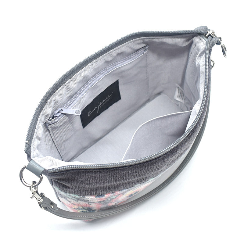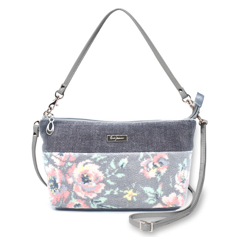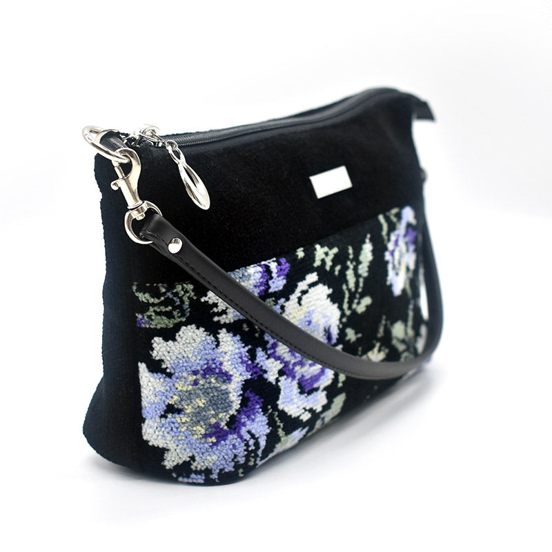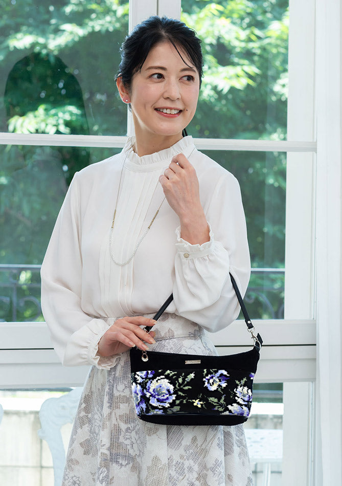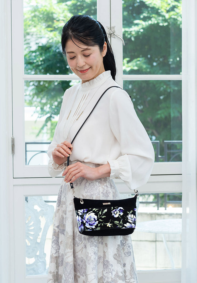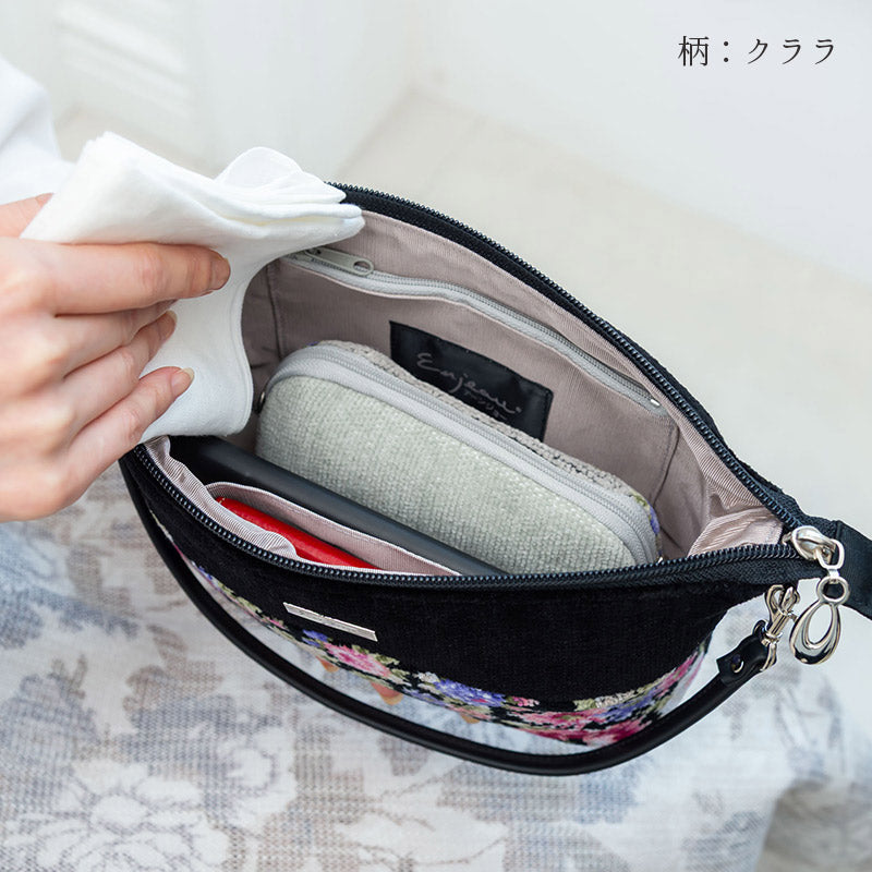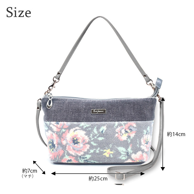 全面シェニール織を贅沢に使い、上品で高級感のあるバッグは、ショルダー用のひもが付いているのでショルダーバッグにもなり、2WAYでお使いいただける人気の型です。