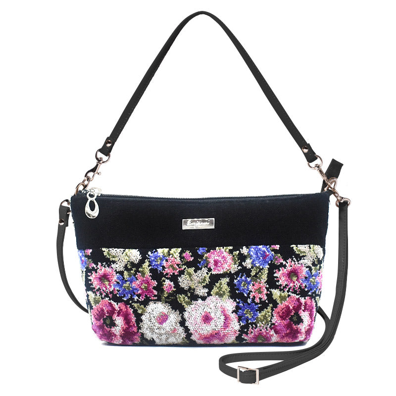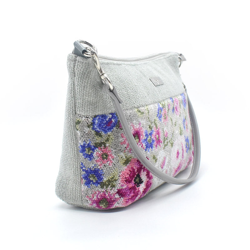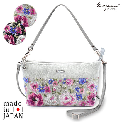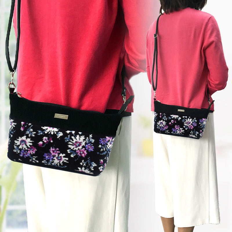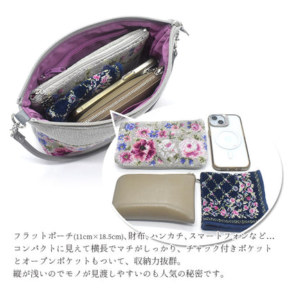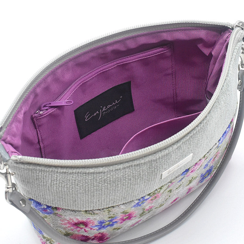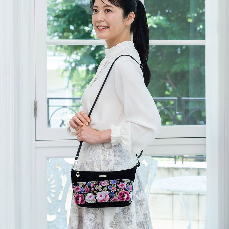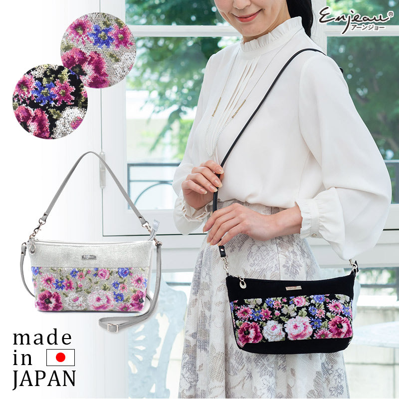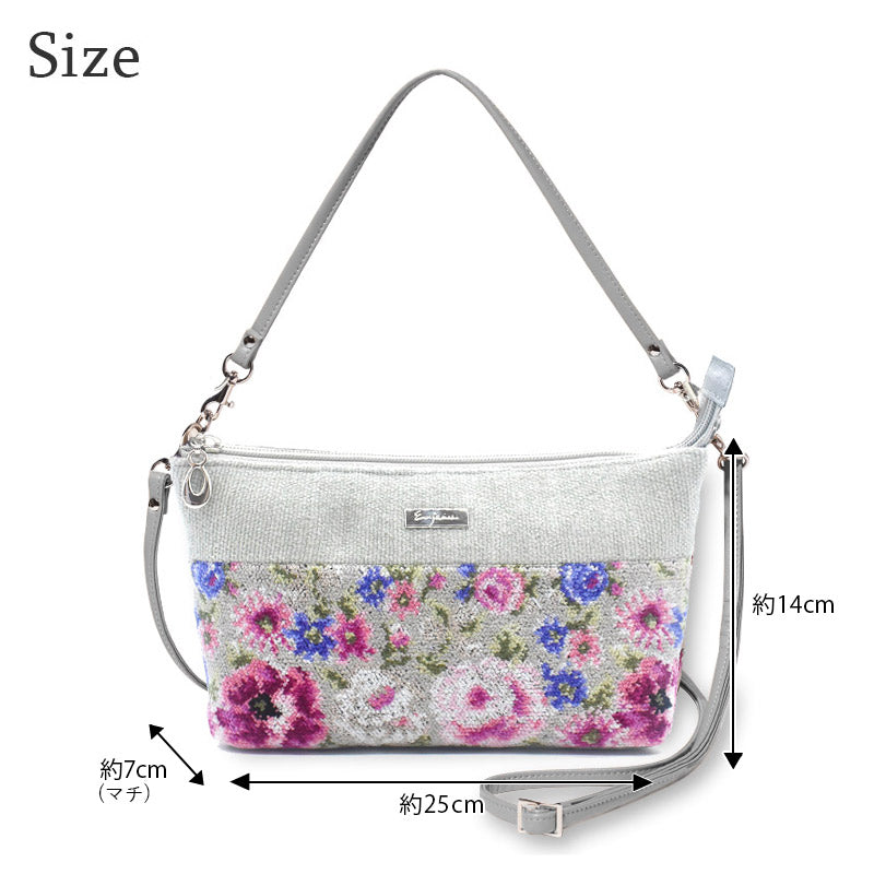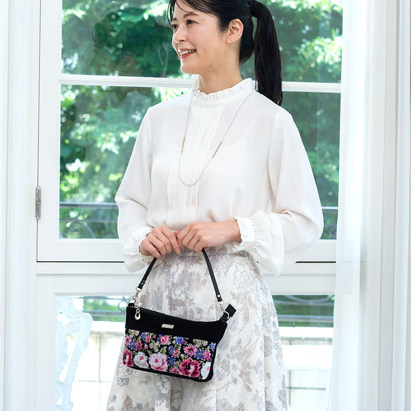 全面シェニール織を贅沢に使い、上品で高級感のあるバッグは、ショルダー用のひもが付いているのでショルダーバッグにもなり、2WAYでお使いいただける人気の型です。