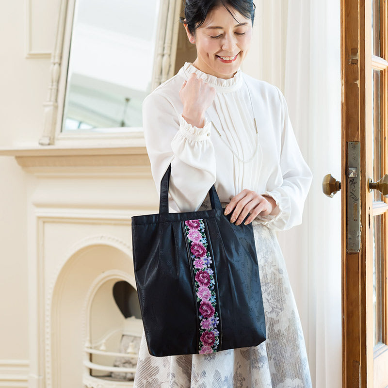 上品で華やかな【カルム】柄の縦型トートバッグ。
