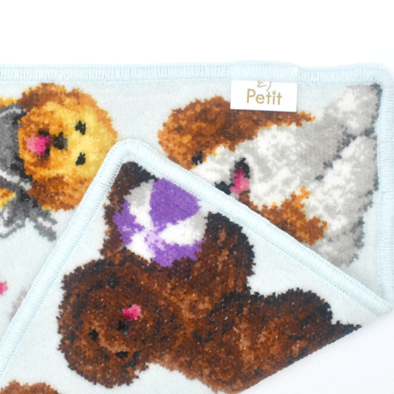 可愛い表情の動物たちに心が癒される【DOG&CAT】シリーズのハンカチ。