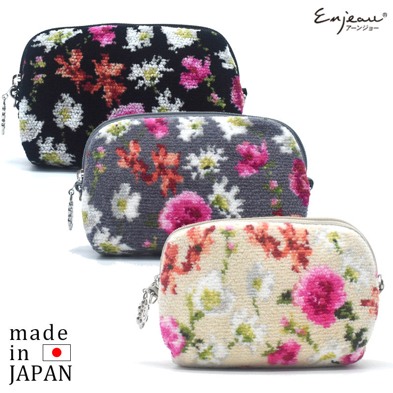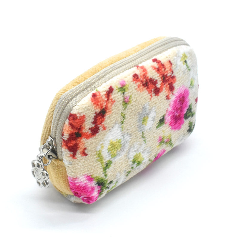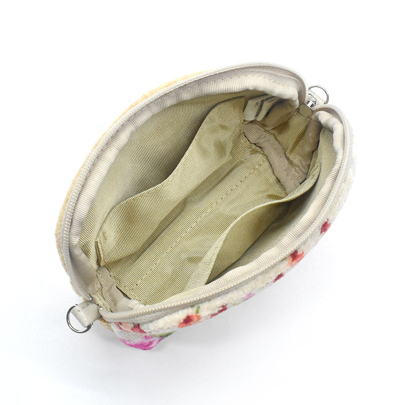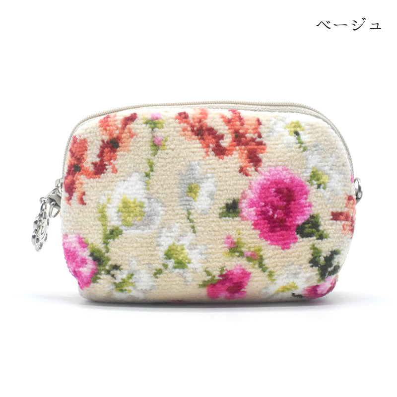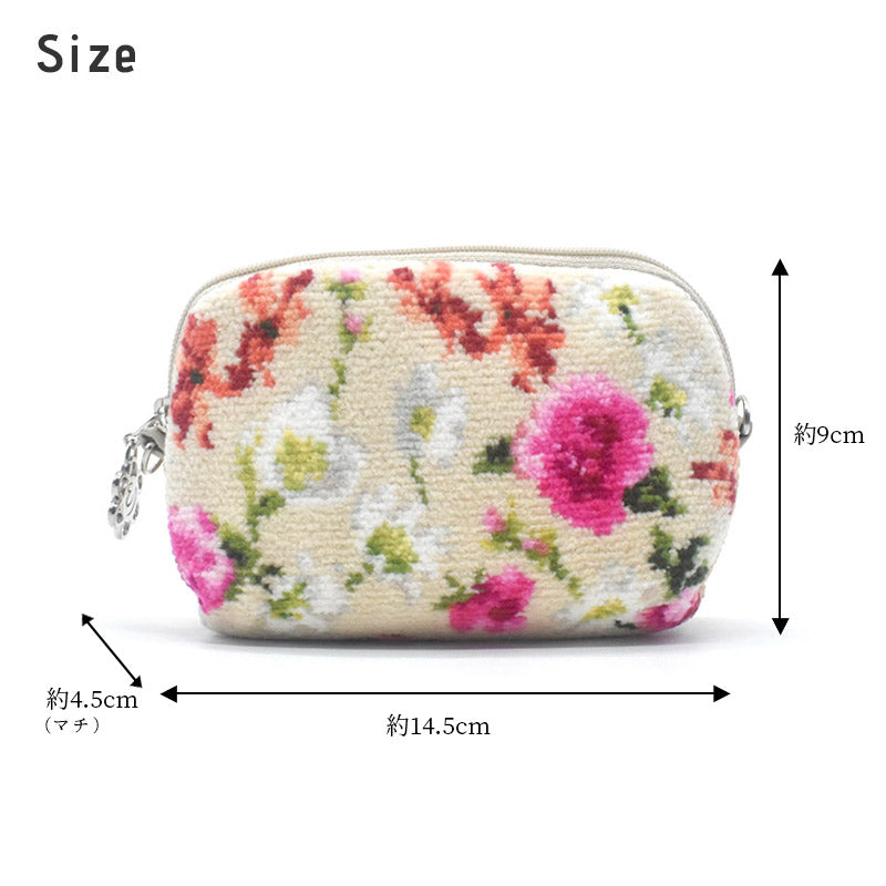 マチ付なので厚みのあるコスメやデジカメなどの収納に大活躍しそうなミニポーチです。中には両サイドにポケットになる仕切りがついていて小さなものの小分けに便利です。