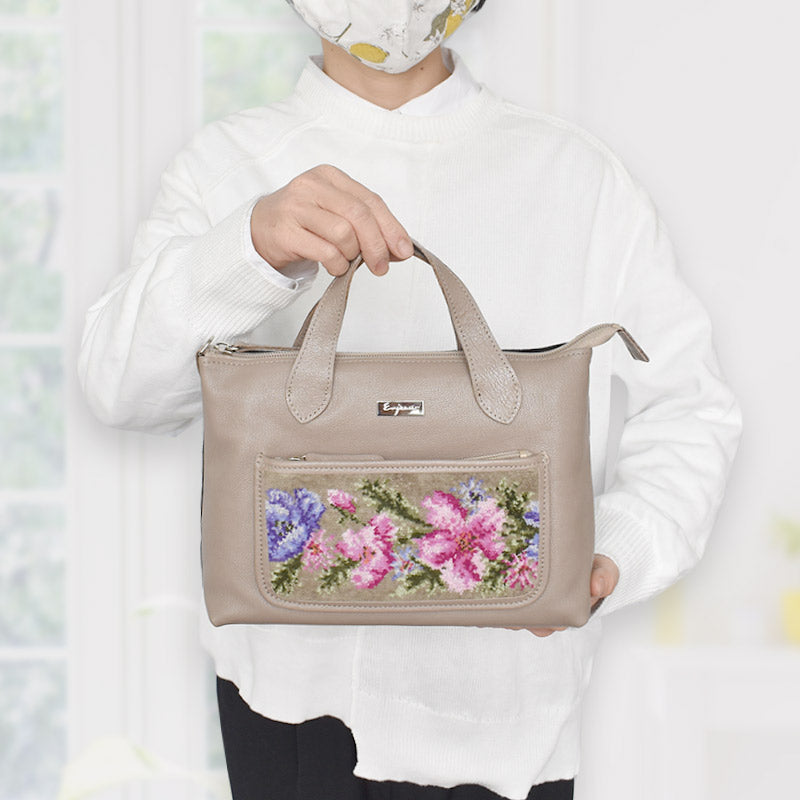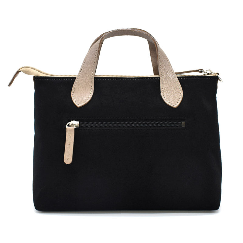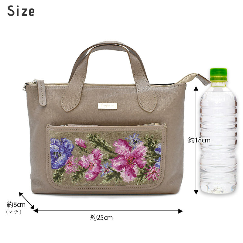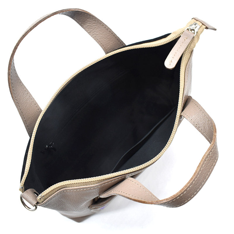 コンパクトながらマチが8cmあり、長財布もしっかり収納。ショルダー紐部分には馴染みの良い綿の太ショルダーを使用。内部にはオープンポケットが×1、背面部にファスナー付きポケットがついた嬉しい設計。 軽さはなんと314g!ご年配の方にもオススメの軽量バッグです。身軽にお出かけできて、お出かけするのが楽しくなるバッグ。