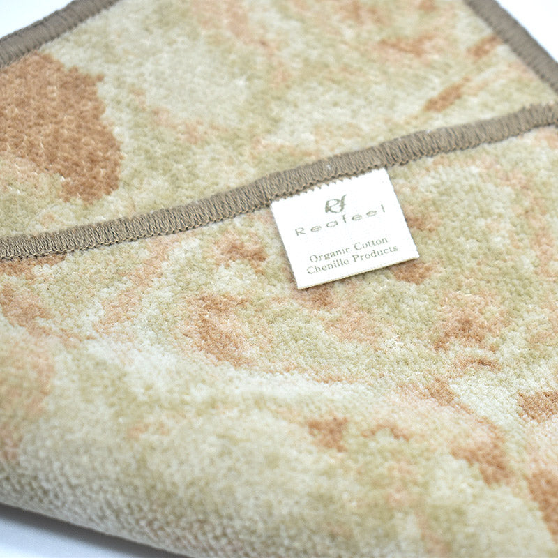 ふんわりと包み込むような厚みのある質感が心地いいシェニール織物。その優しい肌触りに加え、吸水性の良さ、軽さや丈夫さなどの高い機能性も魅力です。また、織物の特性から色落ちや糸抜けなどの心配がなく、洗濯しても固くなりにくく実用性にも優れています。