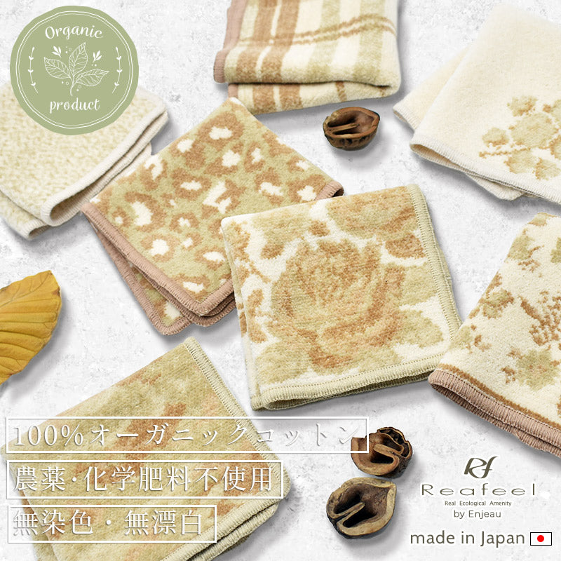 染料を一切使わず、コットンそのものの色味を上手く使い柄が出るように織り上げた100%オーガニックコットン使用の最高級日本製シェニール織ハンカチです。