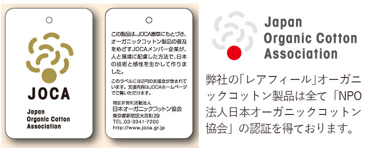 弊社の「レアフィール」オーガニックコットン製品は全て「NPO法人オーガニックコッン協会」の認証を得ております。