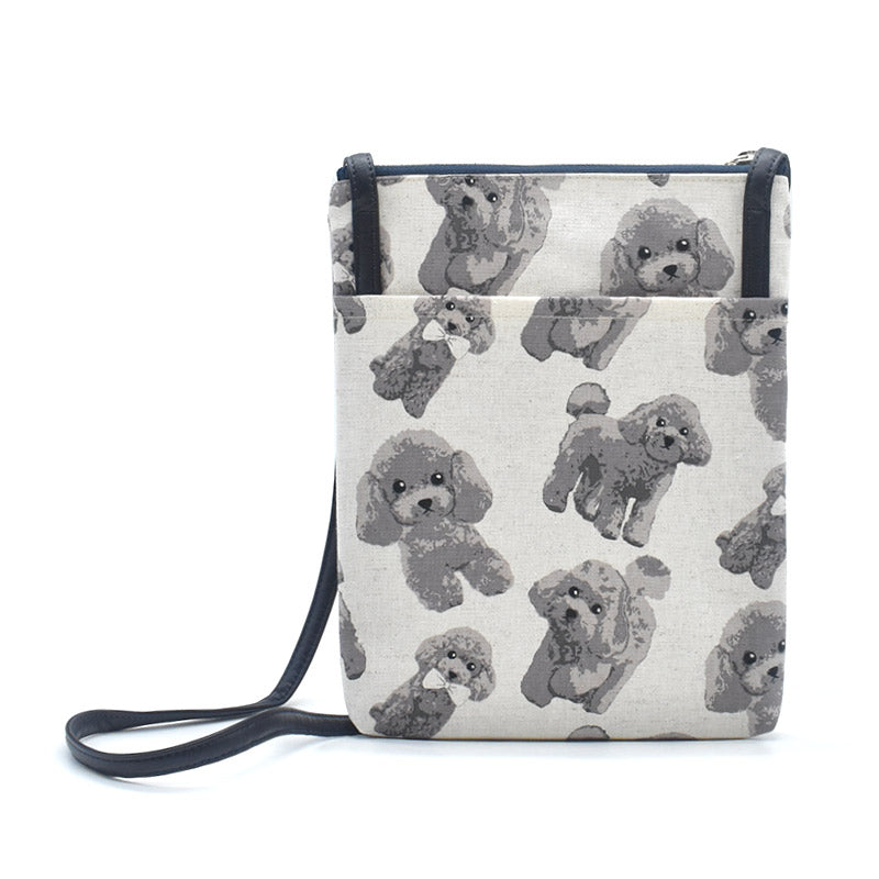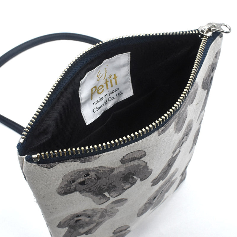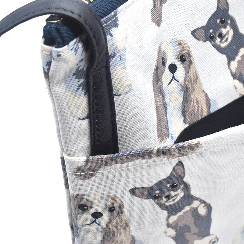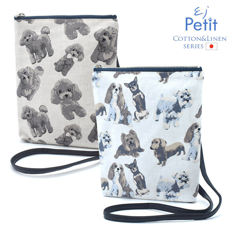日本製の中厚手のコットンリネン生地にカワイイ犬柄のプリントをあしらった小物シリーズ。