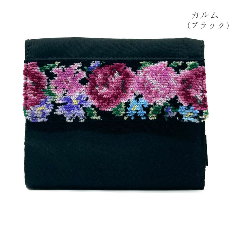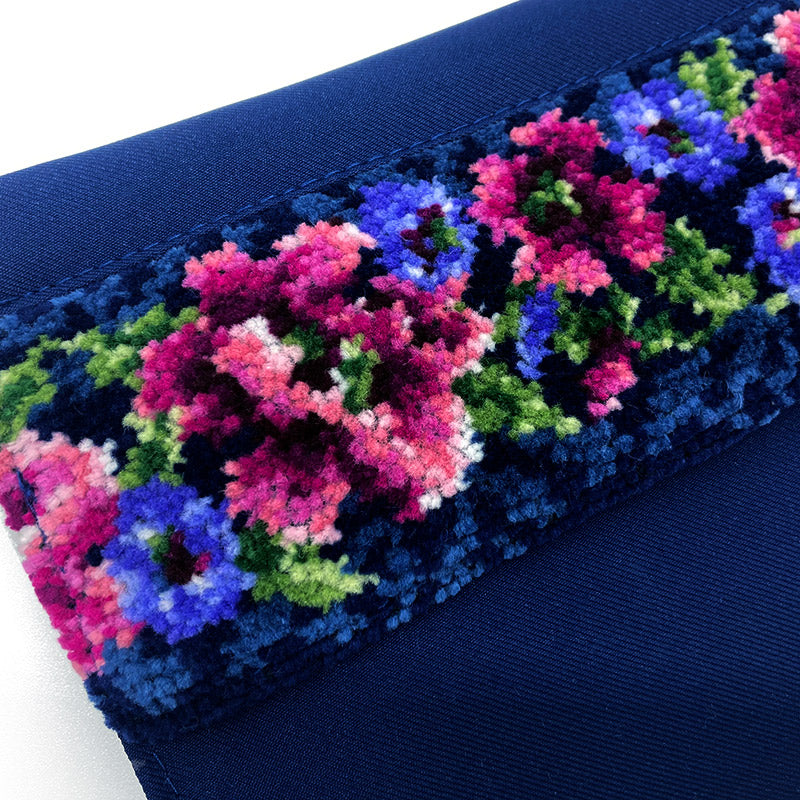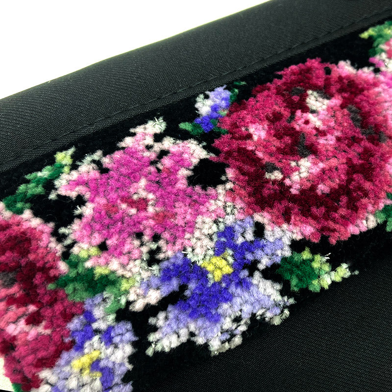 R型ジッパーを採用した制菌マスクポーチは、前面部分にシェニール織をあしらい、上品で高級感のあるデザインに仕上がりました。