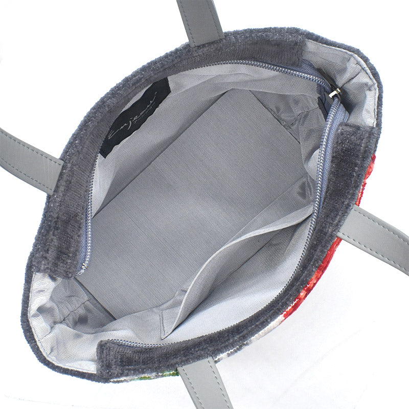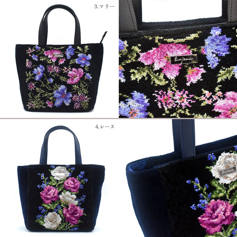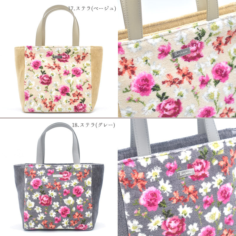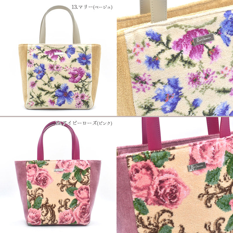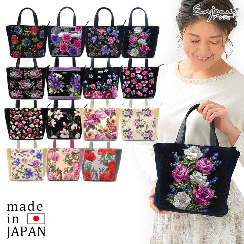 全面シェニール織の贅沢なバッグ。大変高級感があり、特別な日のお出かけにもおすすめ。