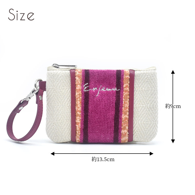サイズはポケットティッシュが丁度入るサイズ。バッグの中で迷子にならないように小物やコスメなどを入れるのに丁度いいサイズに仕上げております。