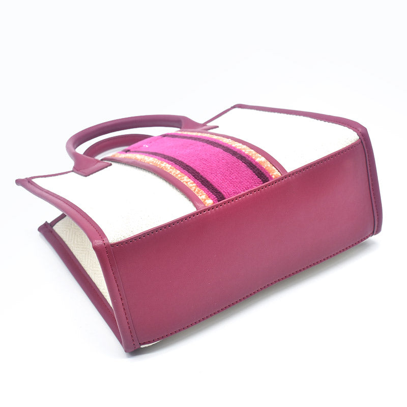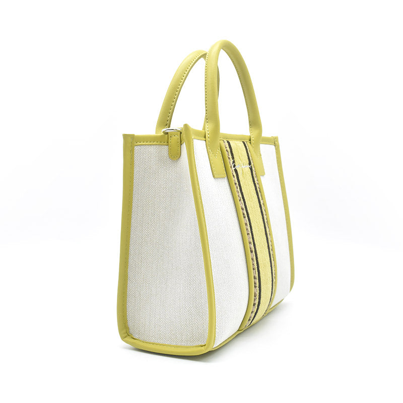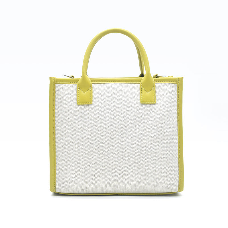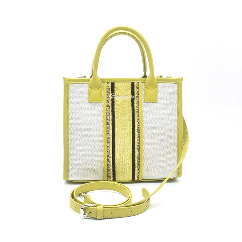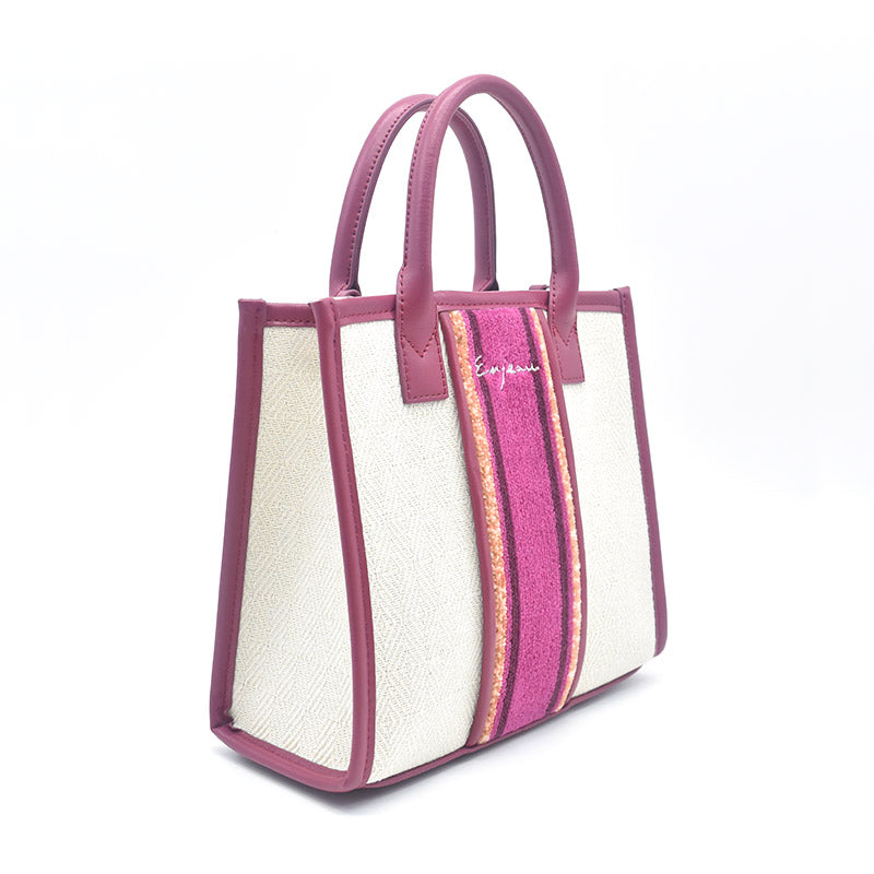 軽量で、強く、高級感のあるメランジ生地を使い、センター部分にはアーンジョーのシェニール織。持ち手や底部分、周りの傷みやすいところは上質な合皮でデザインされたトートバッグです。