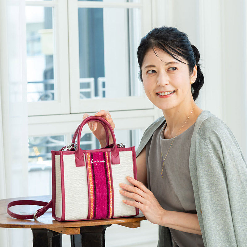 シェニール織をあしらった贅沢なバッグ。大変高級感があり、特別な日のお出かけにもおすすめ。