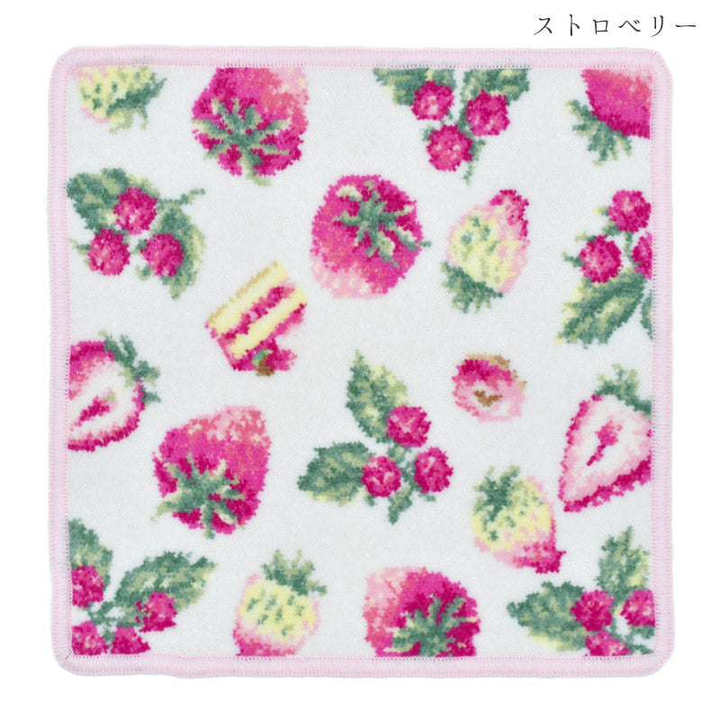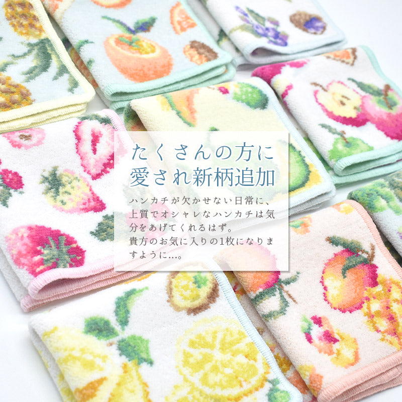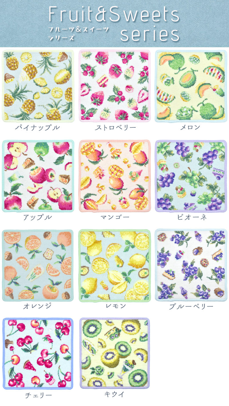 当店人気柄・フルーツとスイーツを散りばめた可愛いハンカチシリーズに新しい柄が仲間入り!