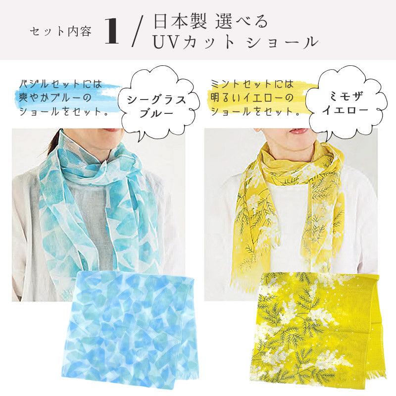 紫外線対策のみならず、冷房対策もできるストールと、