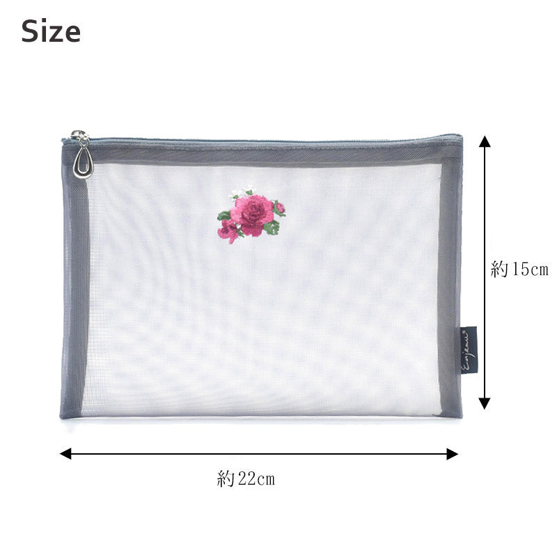 大人気のメッシュポーチに、花柄刺繍入りタイプが登場致しました。