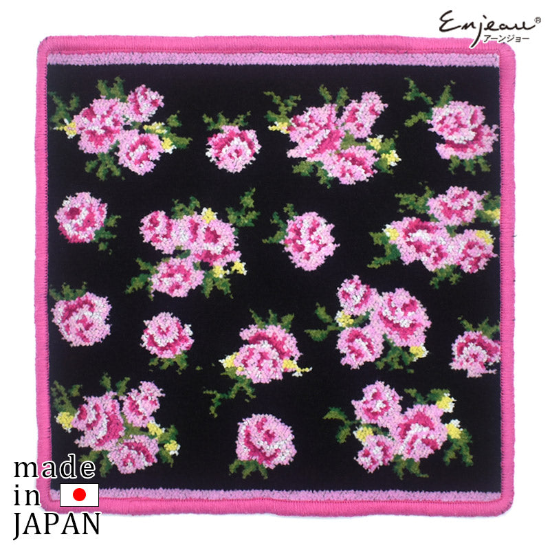 2枚以上ご購入で送料無料 セール 日本製 シェニール織 ハンカチ ペティーローズ 花柄 タオルハンカチ Enjeau アーンジョー
